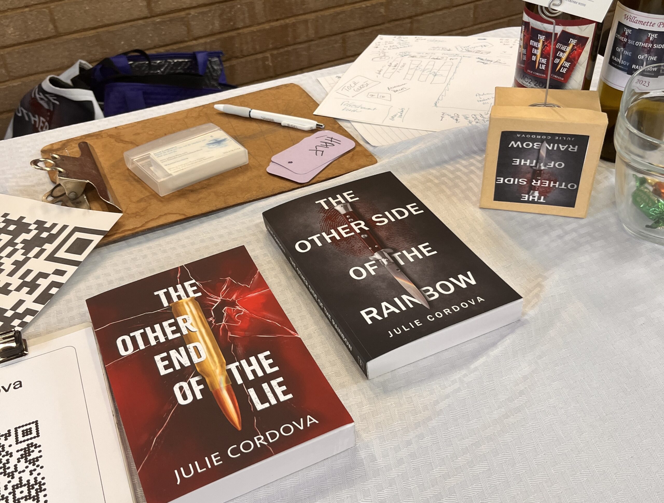 Julie’s first book, The Other Side of the Rainbow, a suspense thriller, was published in 2023. Her second novel, The Other End of the Lie published in July 2025. She is developing the third book of the trilogy now.