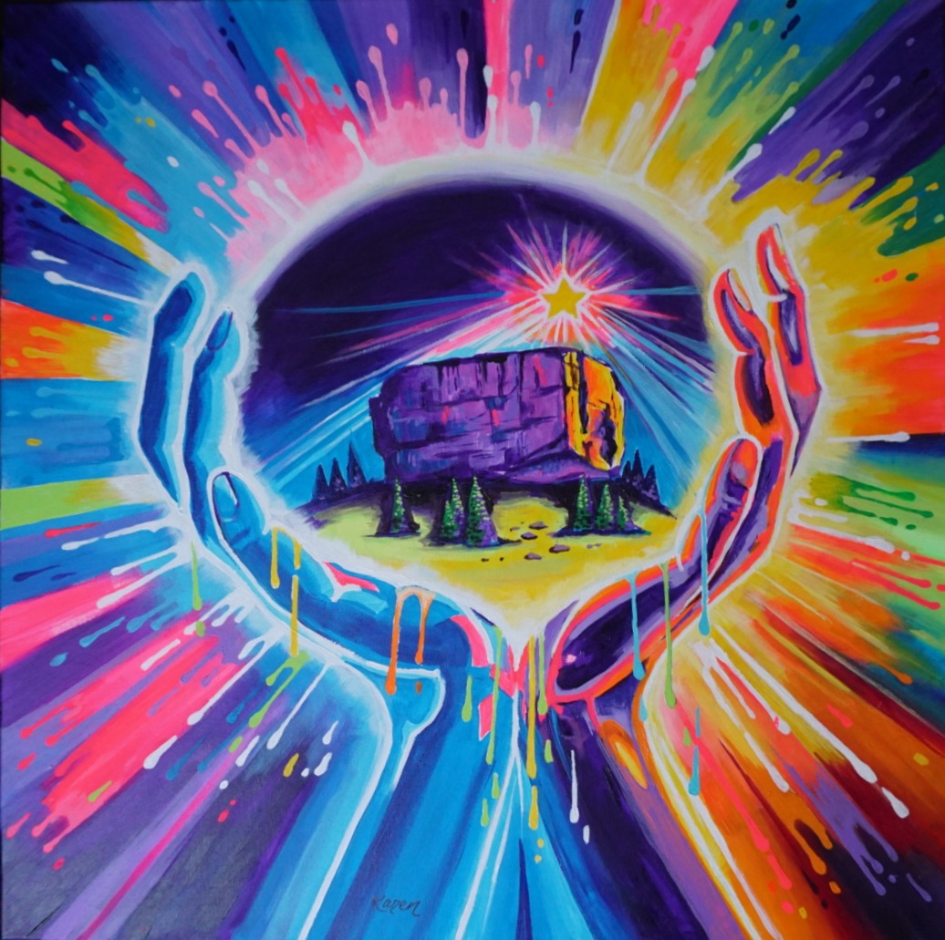 Hi there! I’m Karen DeFrates, a Castle Rock-based artist who loves bringing a burst of color to people’s lives through my art. I primarily work with acrylics, using bright, playful colors to create beautiful florals, landscapes, and whimsical animal pieces.